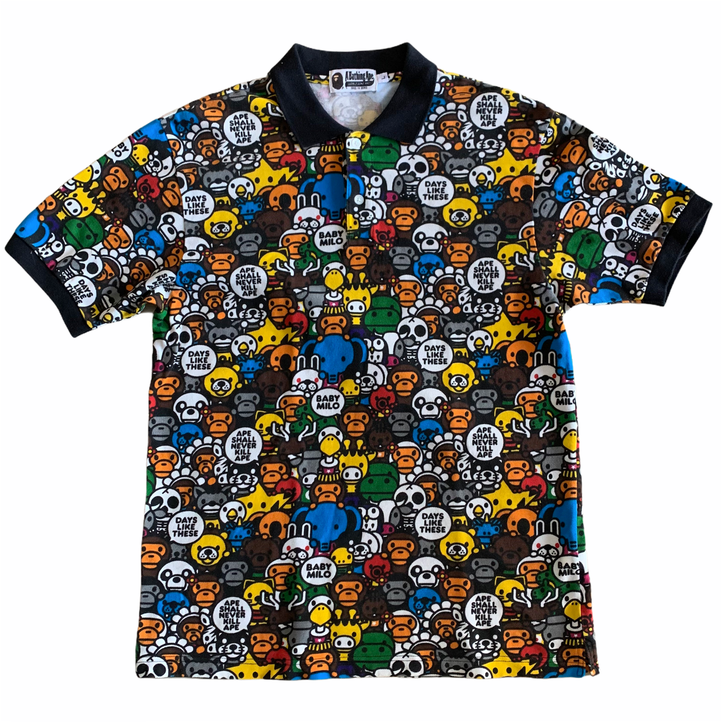 Vintage Baby Milo Bape All-over Print Multi Character Polo