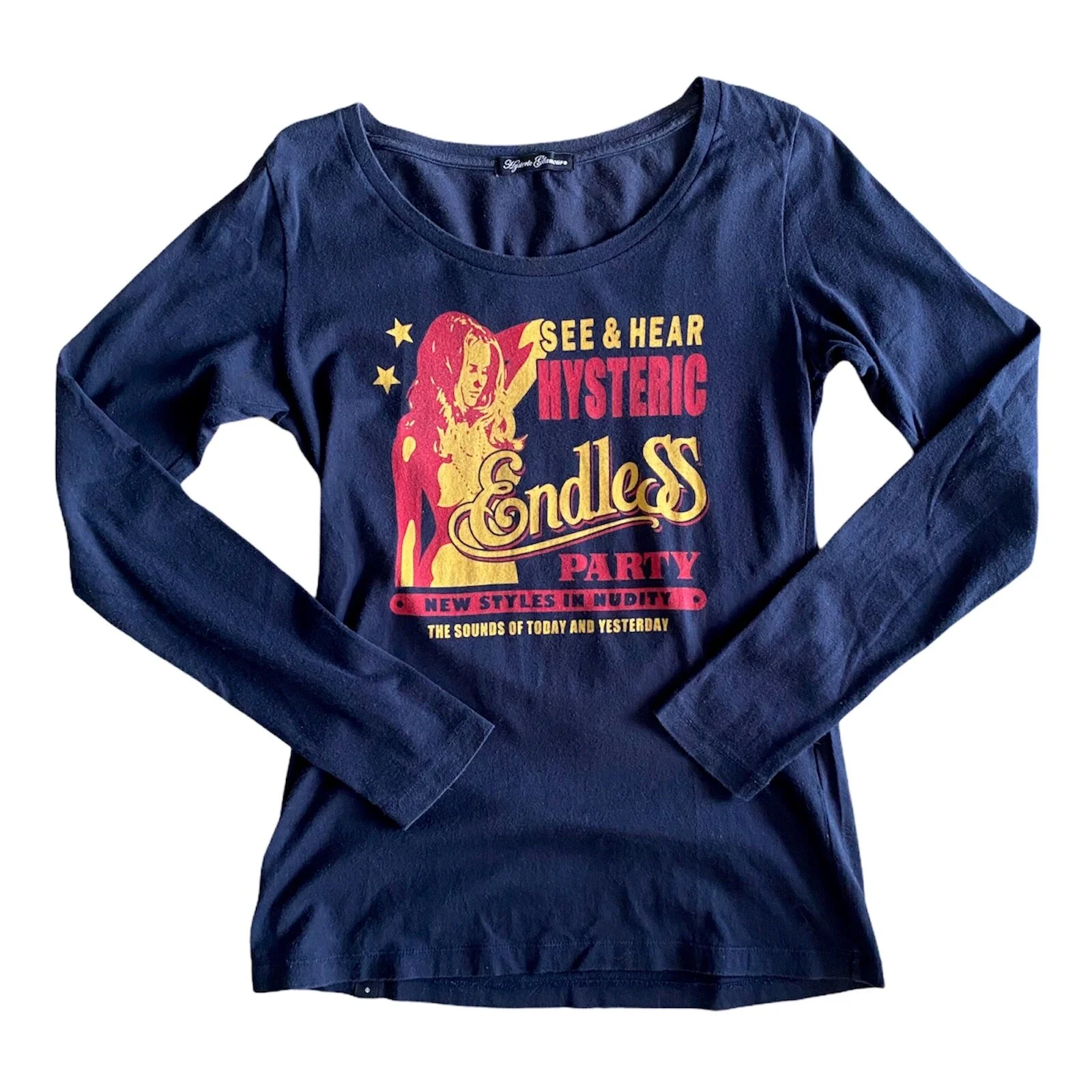 Navy colour longsleeve with red/yellow Hysteric girl graphic and hysteric tab on hem